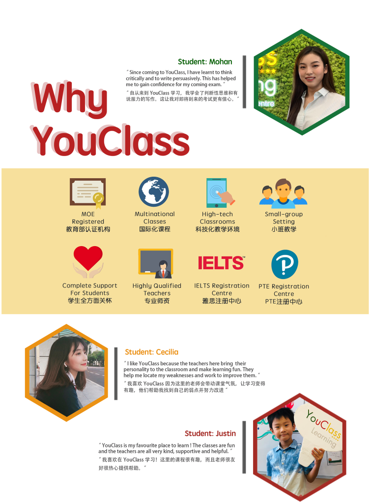 YouClass Learning is Singapore’s trusted training centre for international students, having successfully empowered learners from all over the world to achieve their greatest potential. With an extensive range of professionally designed academic and enrichment courses- spanning our International School Preparatory, Enrichment, and Overseas School Preparatory programmes- we capture each child’s imagination and ignite a lasting passion for learning. As we continue to expand rapidly in the coming years, our commitment remains the same: to equip every student with the knowledge, confidence, and skills to strive for academic excellence.